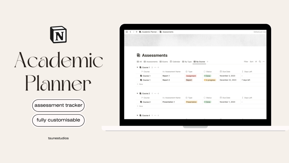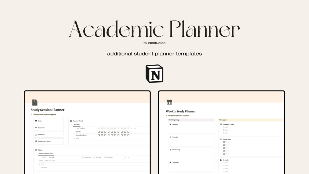 Looking for a planner that will keep you organized and focused for school and college? This Notion template is designed to help you keep track of your assignments, exams, notes & much more! It's easy to navigate and use, while being flexible to fully customize to what works for you! What's more, unlike a paper based notebook, you can add as many pages and entries as you like!
