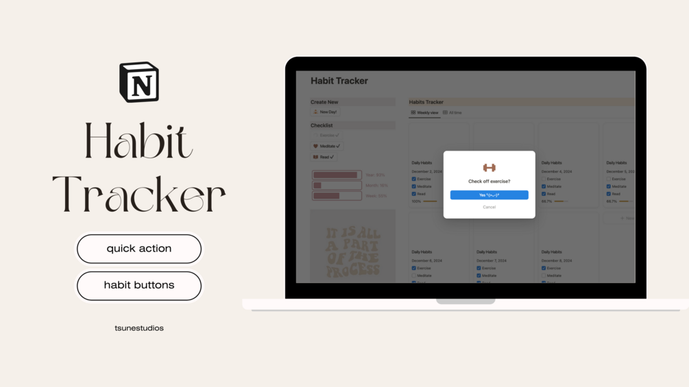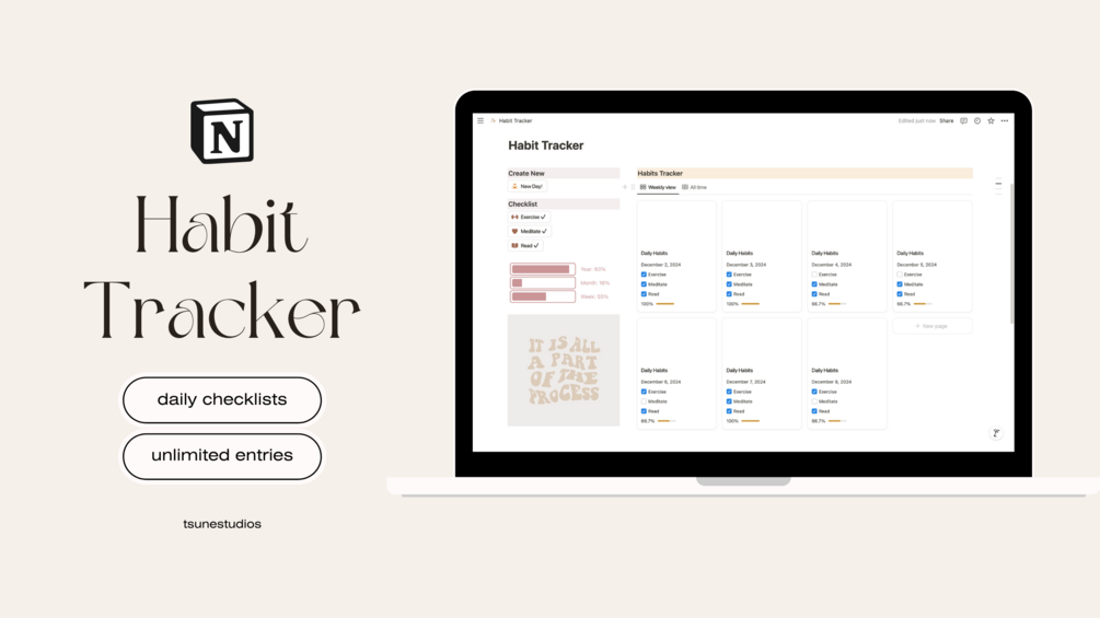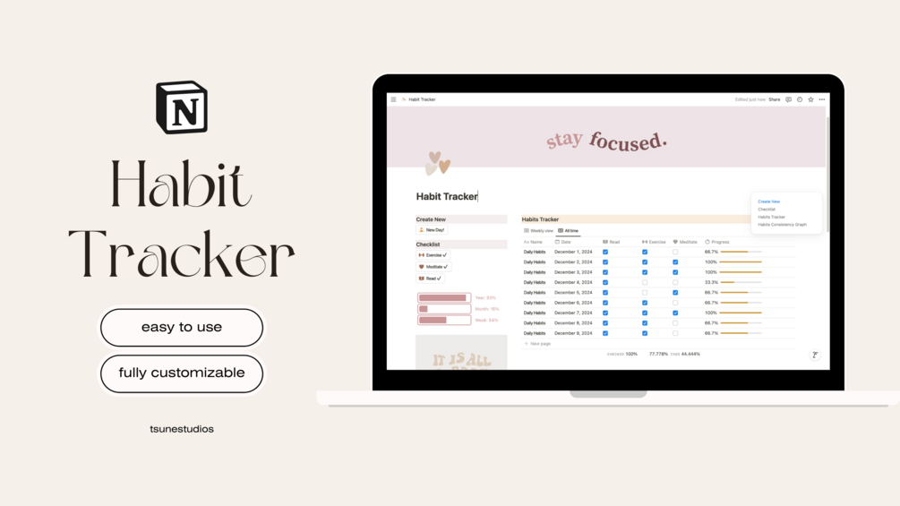 Ready to build better habits and stay on track with your goals? This fully customizable Notion Habit Tracker template is here to make your journey easier and more fun! Whether you're focusing on daily routines, fitness goals, or personal growth, this tracker helps you stay motivated and organized.